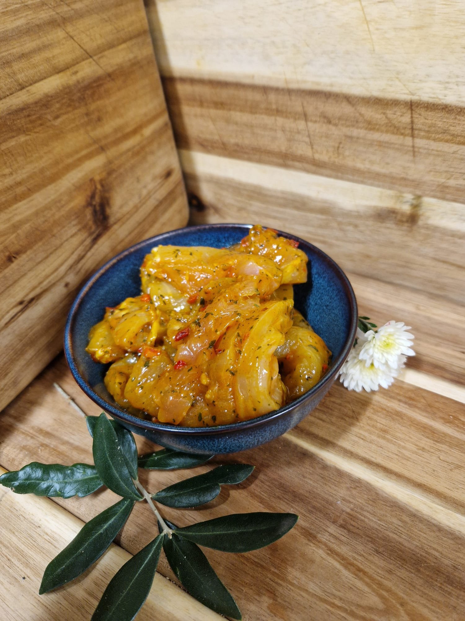 Émincé de poulet mariné, prêt à cuire à la poêle ou au wok. Possibilité de marinades. 16.99€/kg