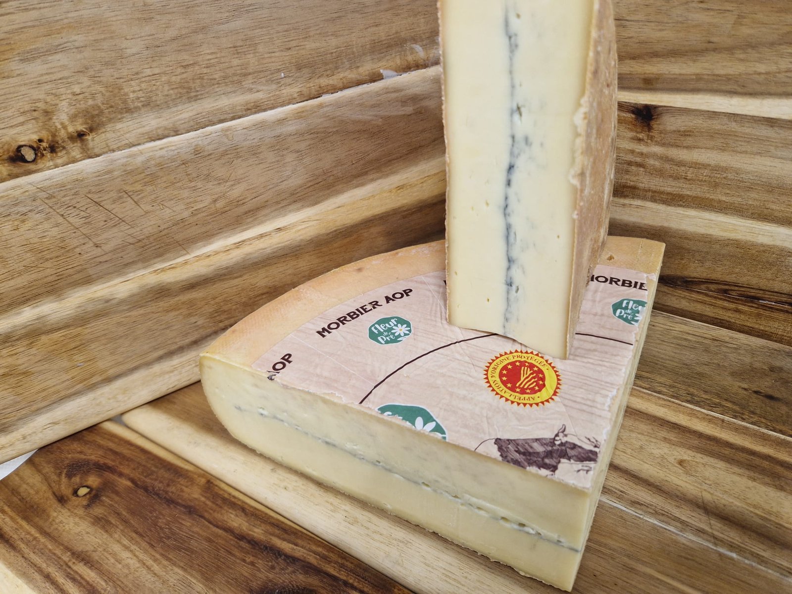 Fromage à pâte pressée non cuite, identifiable par sa raie cendrée. Texture souple, goût doux et lacté. Lait Cru de Vache. 22,90€/kg