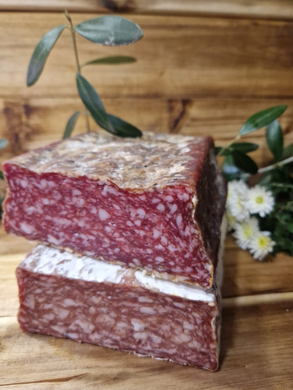 Pavé Montagnard, saucisson , prêt à être dégusté en tranches.